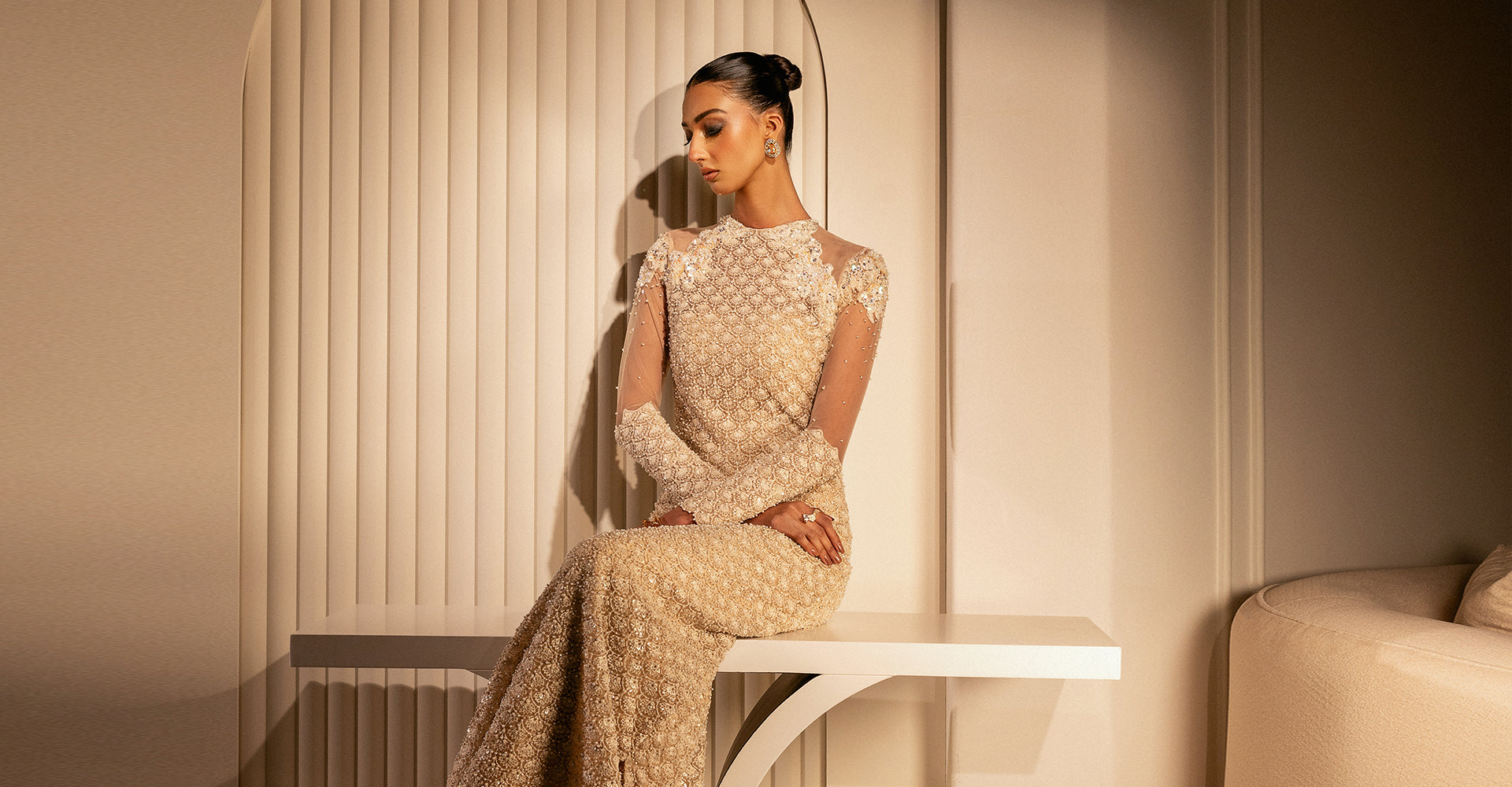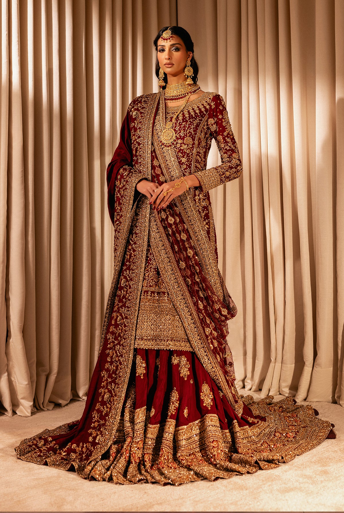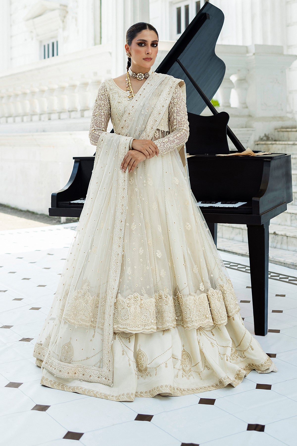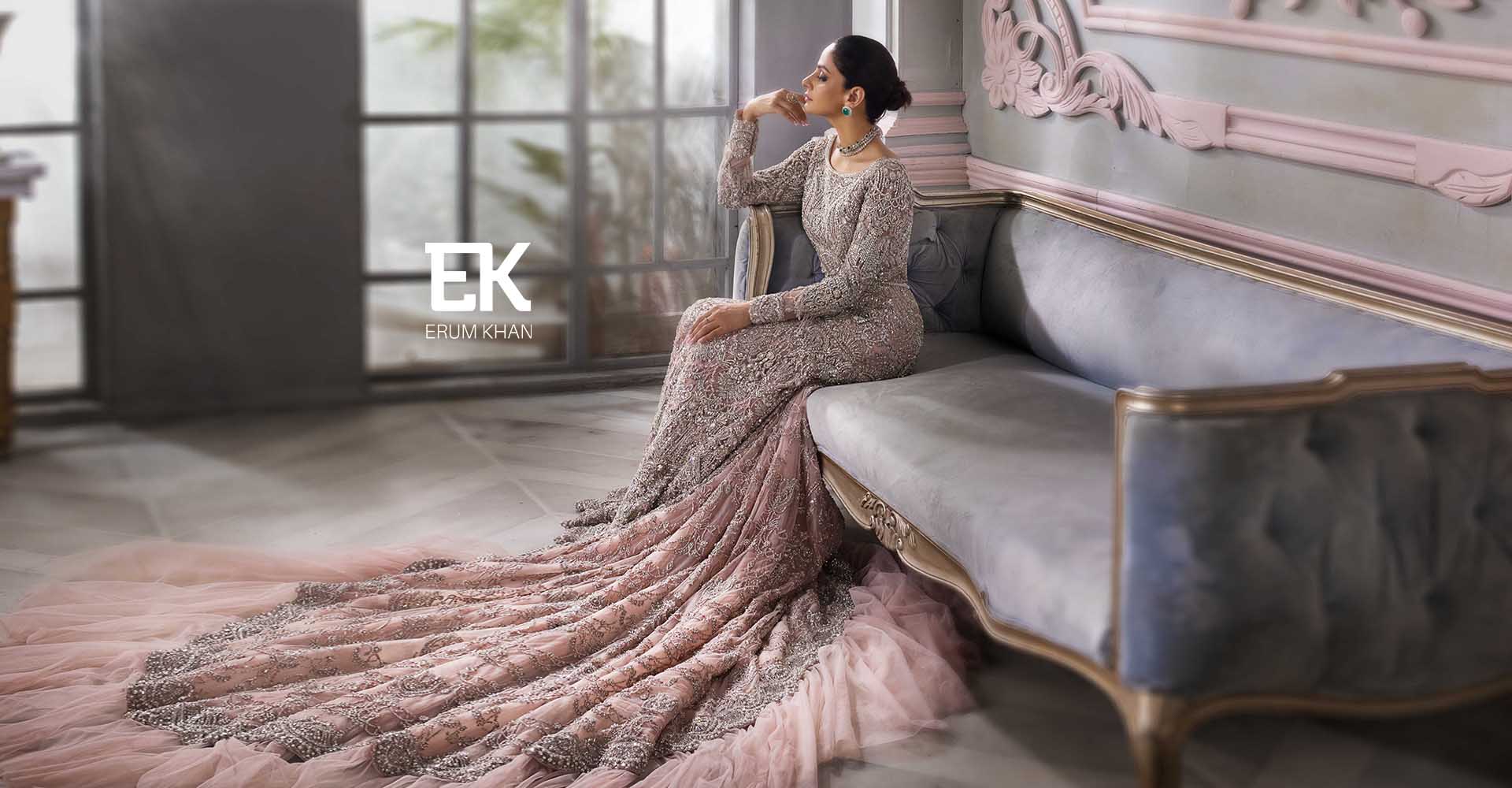 Discover Erum Khan’s signature luxury bridal dresses — designed with timeless elegance, intricate embellishments, and modern silhouettes. From handcrafted lehengas to couture gowns, each piece is created to make your wedding day unforgettable.