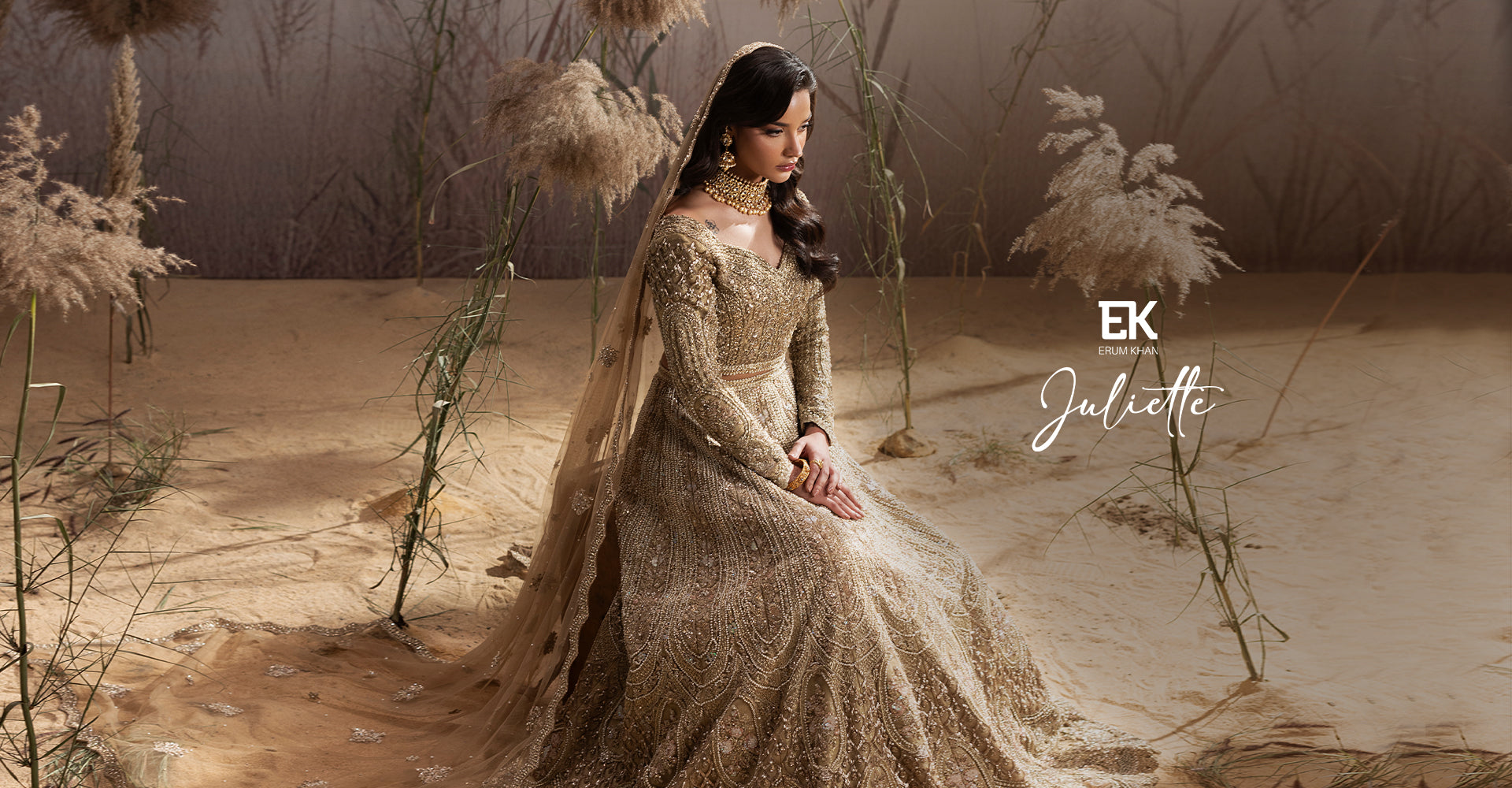 Discover Erum Khan’s signature luxury bridal dresses — designed with timeless elegance, intricate embellishments, and modern silhouettes. From handcrafted lehengas to couture gowns, each piece is created to make your wedding day unforgettable.