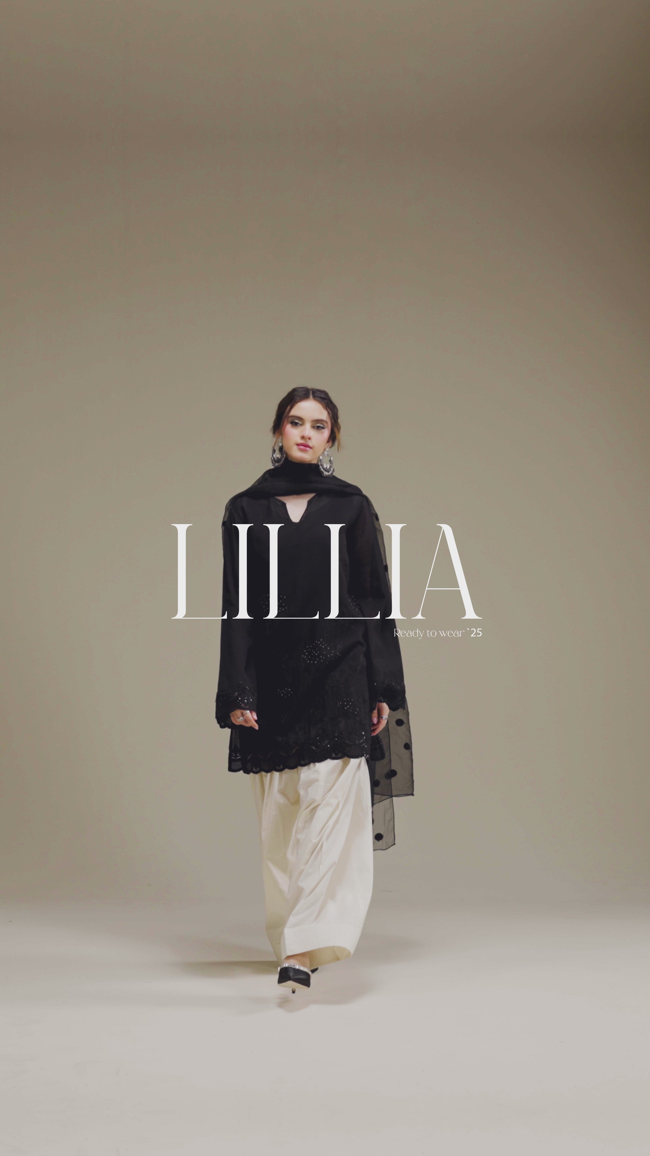 Night Petal is the perfect blend of bold elegance and delicate detailing. This stunning ensemble features an intricately embroidered black short shirt, offering a sleek, modern silhouette with timeless appeal. Paired with an off-white farshi shalwar, the design creates a striking contrast that is both graceful and contemporary.