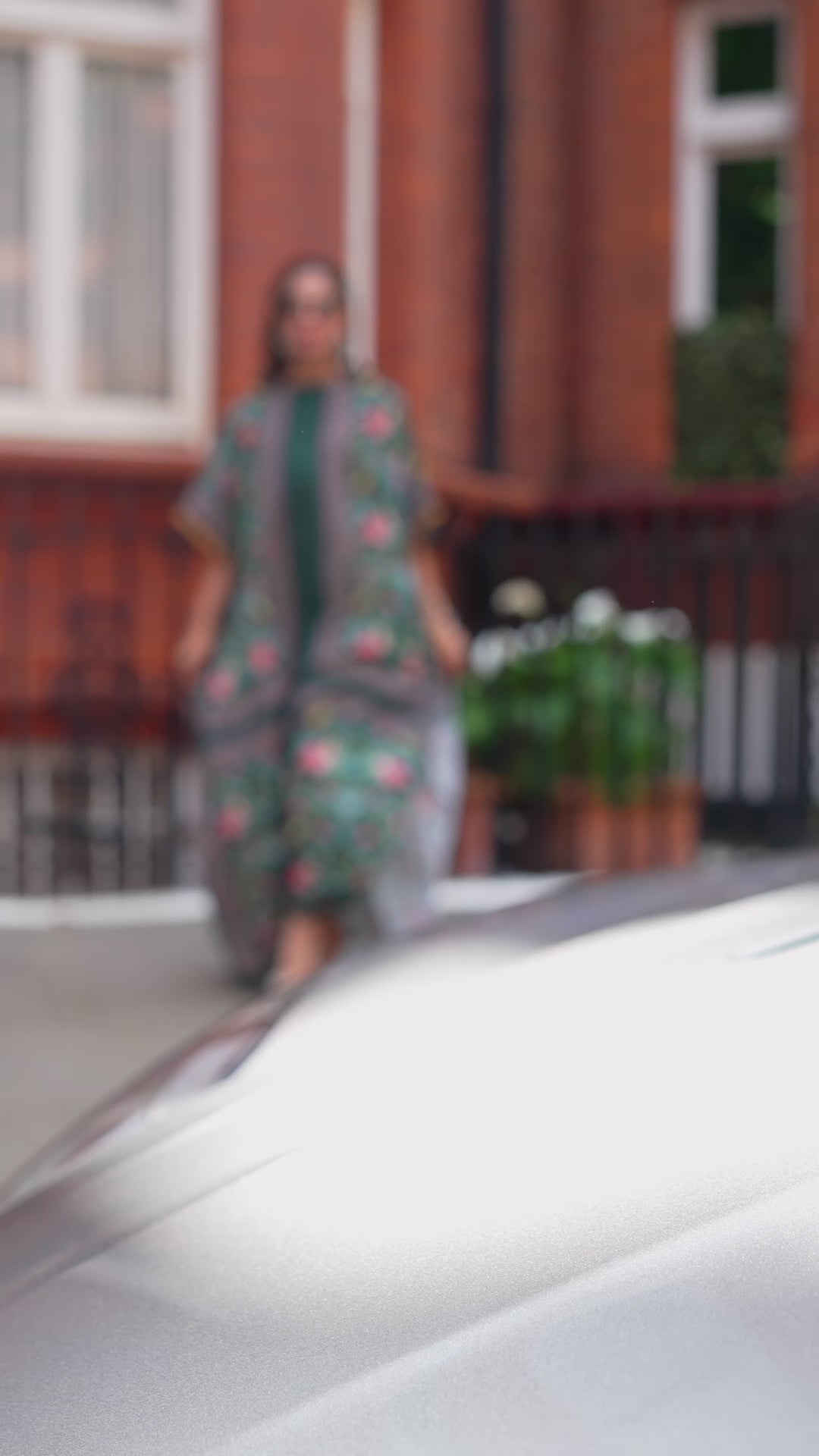 This elegant verdant kaftan showcases a vibrant box-cut silhouette, beautifully adorned with a lush botanical and floral print, alive with vivid blooms and whimsical birds. The intricate detailing creates a captivating visual tapestry, ideal for those who love to stand out. The rich green hue exudes luxury and refinement, while the airy georgette fabric and flowing design offer effortless comfort and grace