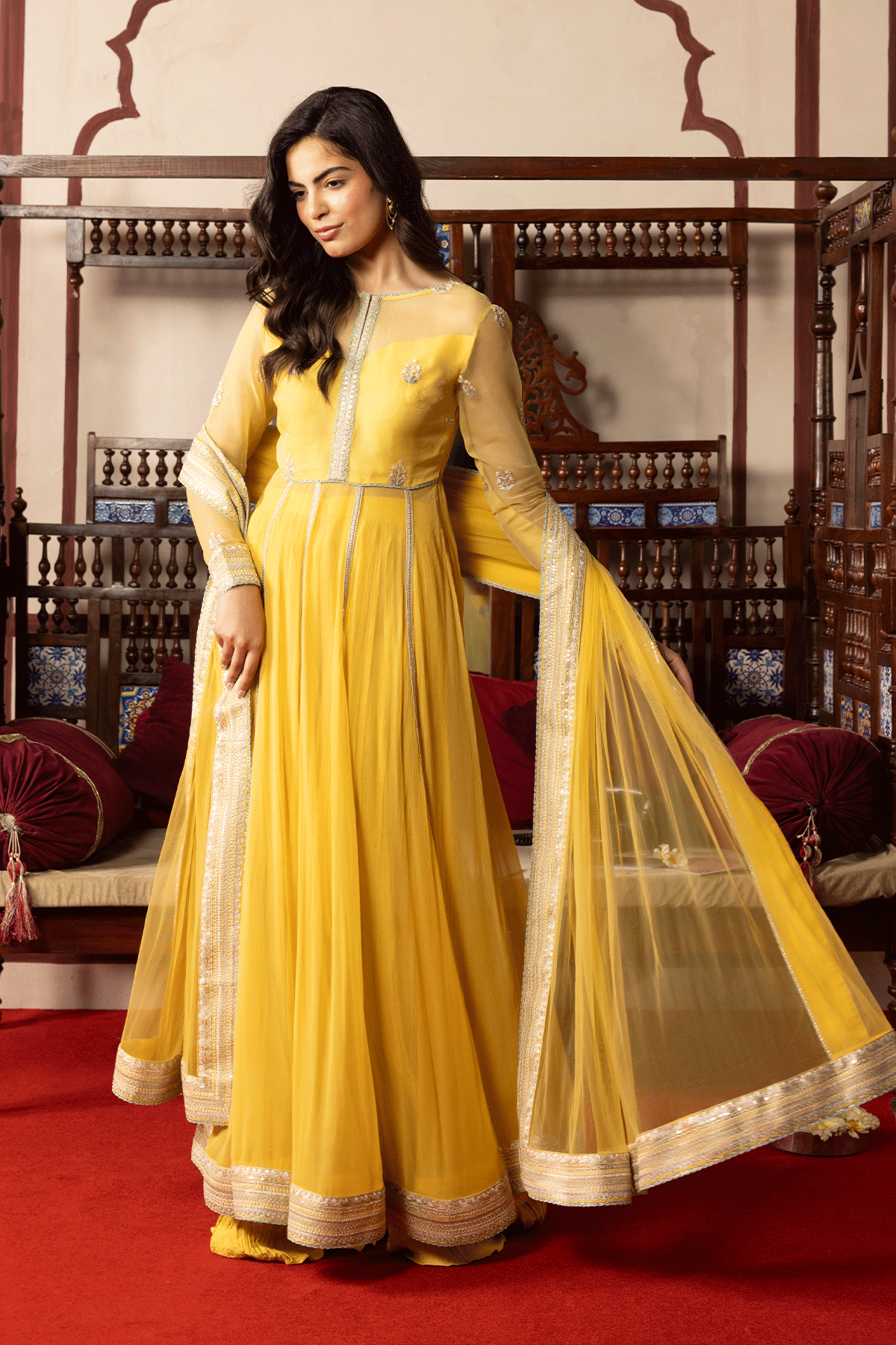 Adding versatility to your closet, Erum Khan’s shrugs are designed as layering staples that bring refinement to any outfit. These shrugs are tailored to perfection with lightweight fabrics, intricate detailing, and versatile cuts that complement both traditional and modern ensembles.