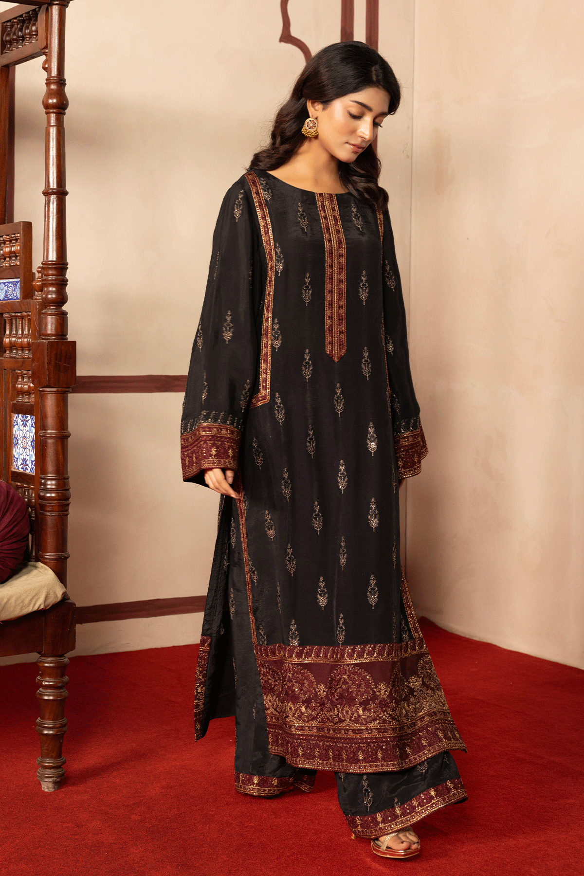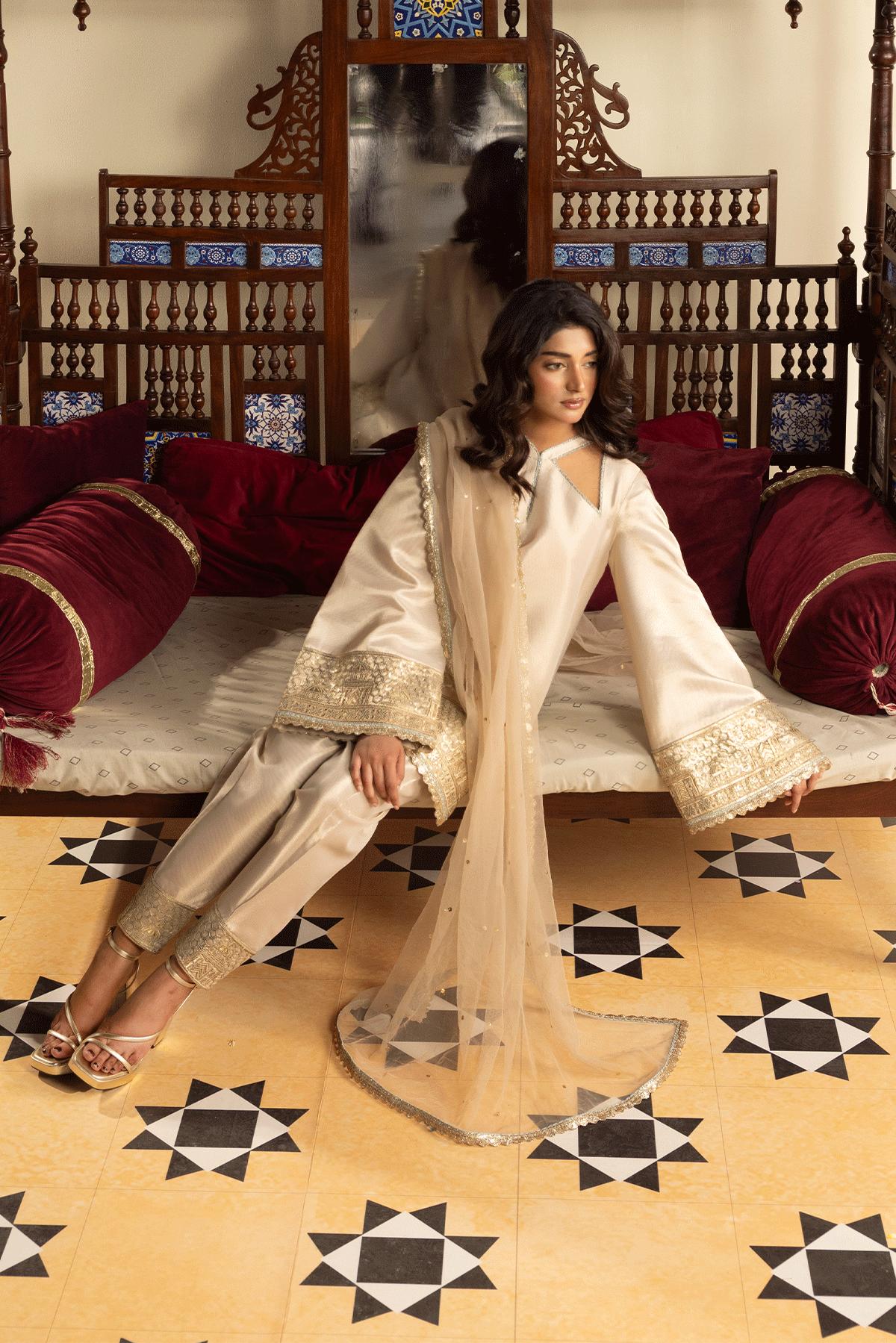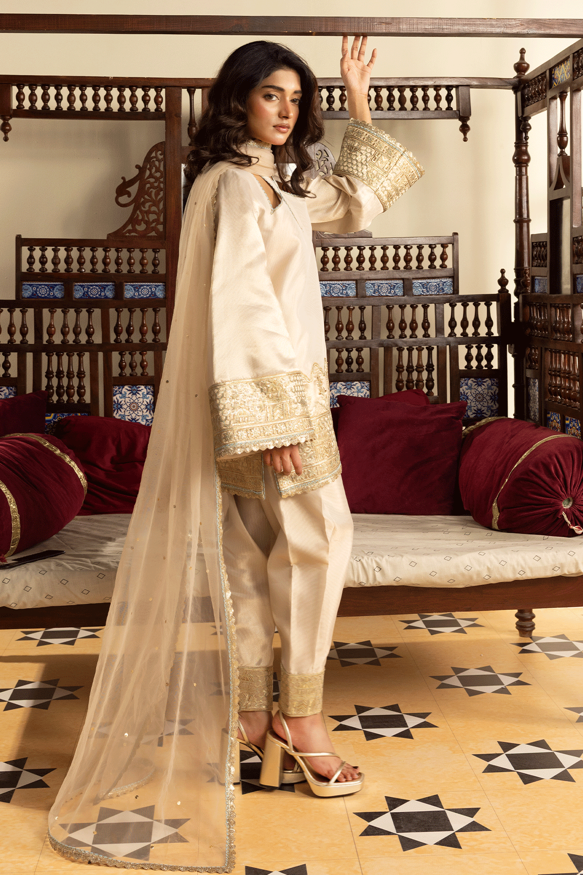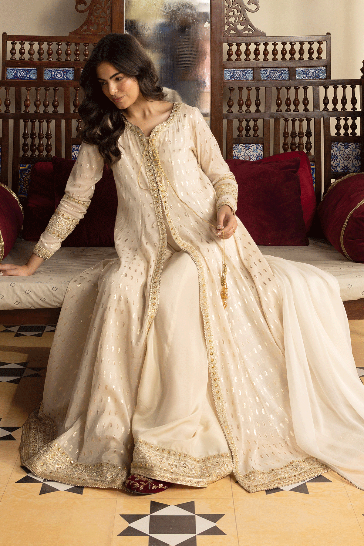 The highlight of Erum Khan’s ready-to-wear line is the luxury shalwar kameez—a timeless staple reimagined with contemporary flair. These pieces are adorned with delicate embellishments, fine embroideries, and modern cuts that make them stand out while preserving their traditional charm.
