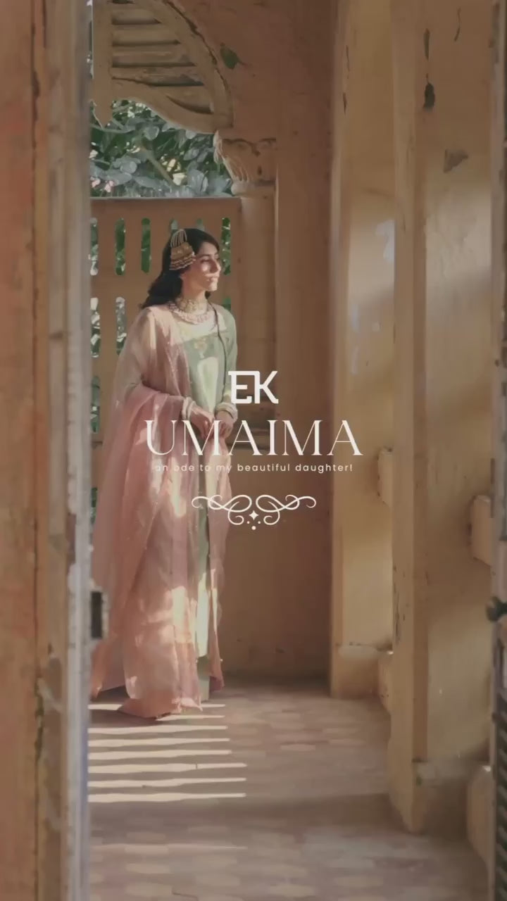 A pastel dream painted over a pistachio hued long shirt with hand embroidered golden embellishments and a pair of culottes daintily laced with goldwork. A blush dupatta with delicately embellished borders gives this outfit an elegant charm.