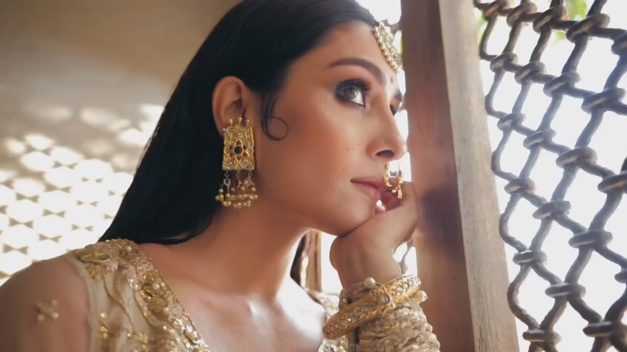Royalty is the second name of this outfit. Made with heavy embroidery and gotta work followed by beautiful set of sequins. Adorned with crystals and pearls making it a great fit for the festive season.